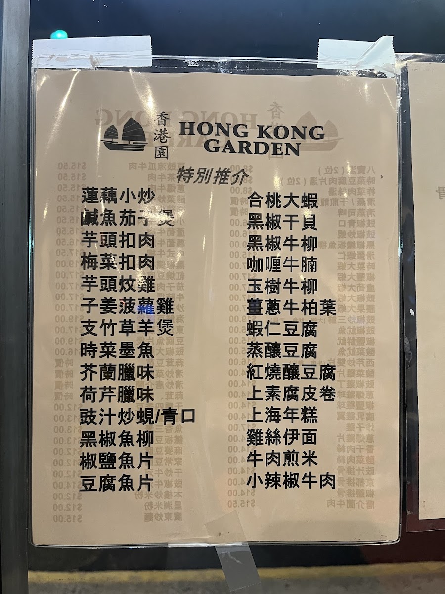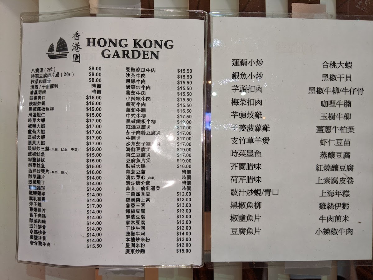 Hong Kong Garden - Somerset Menu